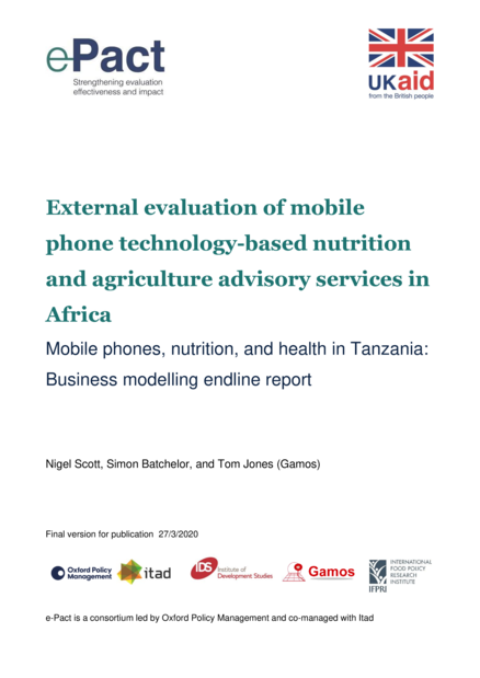 External Evaluation of Mobile Phone Technology-Based Nutrition and Agriculture Advisory Services in Africa: Mobile Phones, Nutrition, and Health in Tanzania. Business Modelling Endline Report