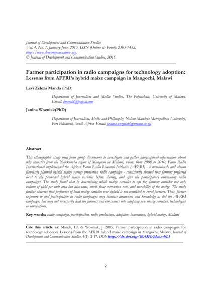 Journal of Development and Communication Studies, volume 4, issue 1 (2015), pp. 1-17
