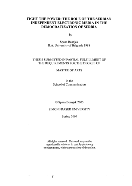 Fight the Power: The Role of the Serbian Independent Electronic Media in the Democratization of Serbia