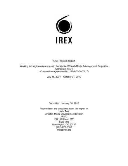 Final Program Report: Working to Heighten Awareness in the Media (WHAM). Media Advancement Project for Azerbaijan (MAP)