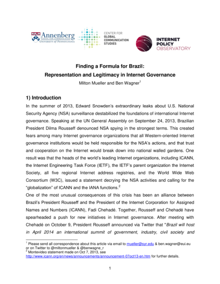 Finding a Formula for Brazil: Representation and Legitimacy in Internet Governance