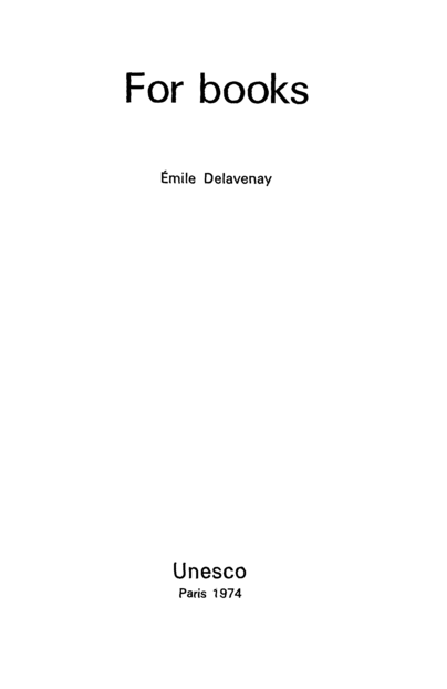 "The aim of this booklet is, by briefly showing the diversity of the tasks undertaken, to survey the multiform but deliberately concerted and co-ordinated activities which, while centred on books as their main theme, none the less converge on the development of man and the fulfilment of his biological and social potentialities." (Introduction, page 8)