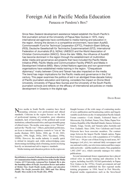 Foreign Aid in Pacific Media Education: Panacea or Pandora’s Box?