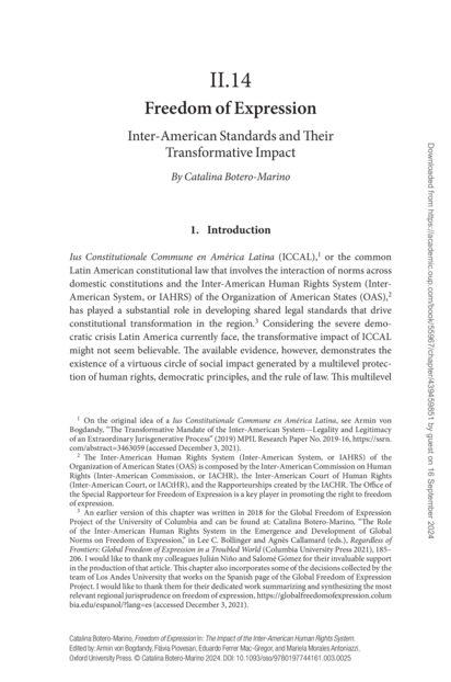 Freedom of Expression: Inter-American Standards and Their Transformative Impact