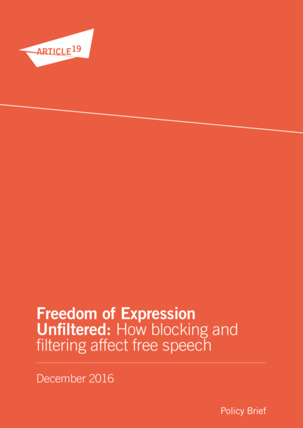 "This policy brief is divided into four parts. First, we provide basic definitions and terminology concerning blocking/filtering. This is followed by an outline of relevant international standards on freedom of expression. We then address the fundamental issues underlying the use of filters and blocking measures. Finally, we provide comprehensive recommendations for legislators, policy and decisions makers in this area. Summary of recommendations: 1. Blanket filtering must be prohibited by law; 2. Filtering should be user-controlled and transparent; 3. Any requirement to block content must be provided by law; 4. Blocking should only be ordered by an independent and impartial court or adjudicatory body; 5. Blocking orders must be strictly proportionate to the aim pursued." (Executive summary)