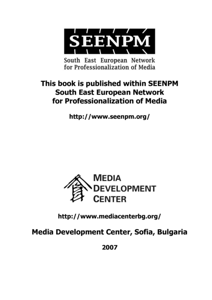 Sofia: Media Development Center; South East European Network for Professionalization of Media (SEENPM) (2007), 613 pp.