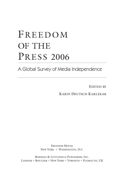 New York; Lanham: Freedom House; Rowman & Littlefield (2006), 272 pp.