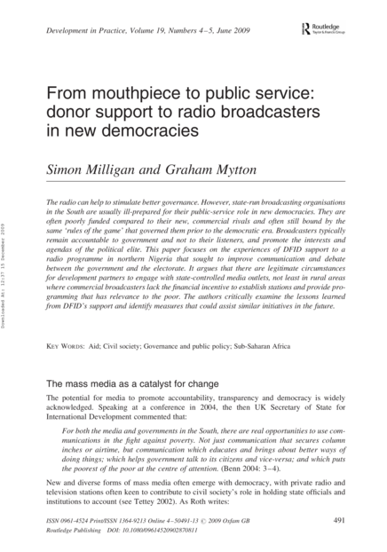 From Mouthpiece to Public Service: Donor Support to Radio Broadcasters in New Democracies
