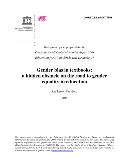Gender Bias in Textbooks: A Hidden Obstacle on the Road to Gender Equality in Education