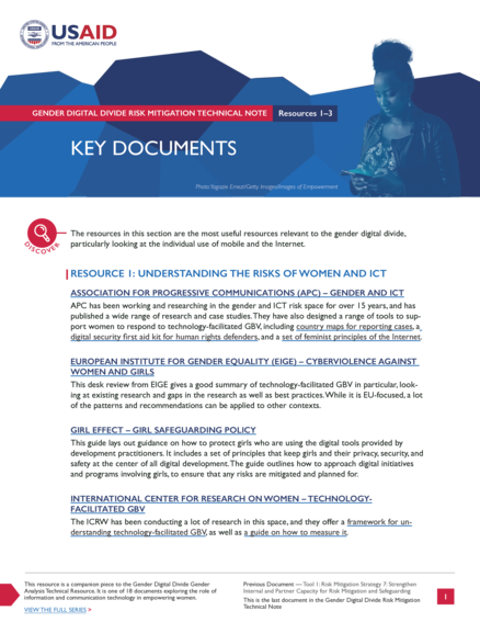 Gender Digital Divide Risk Mitigation Technical Note: Key Documents
