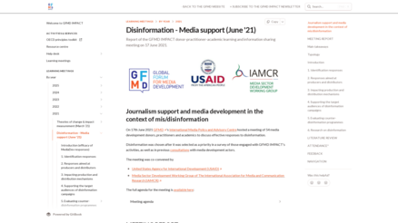 "On 17th June 2021 GFMD's International Media Policy and Advisory Centre hosted a meeting of 54 media development donors, practitioners and academics to discuss effective responses to disinformation. Disinformation was chosen after it was selected as a priority in a survey of those engaged with GFMD IMPACT's activities, as well as in previous consultations with media development actors [...] The meeting report summarises the presentations and discussions that took place in the breakout groups and main session. Ideas put forward on how to make media development responses more effective included: the need for coordination and coalition building; emphasizing the “do no harm” principle, reframing the discussion on disinformation to focus resources on support for journalism; how to effectively make the case for journalism support. Language barriers and sustainability were identified as challenges for fact-checking programmes. Fact-checking services adopting critical media literacy approaches was among many suggestions on how to more effectively engage vulnerable/polarised communities. Research and researchers on disinformation need to be broader and more diverse. Creative solutions were proposed for improving data & information sharing. More research is needed on "production" disinformation. Support to journalism must address: the fact that newsrooms and journalists themselves can be obstacles to building resilience in societies; polarization within journalism. A working paper on measuring and evaluating disinformation programmes identified five key challenges for evaluators and argues for building a community of practice around countering disinformation; carrying out a comparative, impact study; creating a diagnostic tool for program design." (Main takeaways)