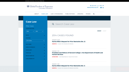 "Columbia Global Freedom of Expression seeks to strengthen freedom of expression worldwide by advancing the understanding of international and national norms and institutions that best protect the free flow of information and expression in an interconnected global community. We do so by sharing knowledge and standards through our Global Database of Freedom of Expression Case Law and by fostering dialogue among domestic, regional, international courts and other important stakeholders responsible for protecting freedom of expression." (Mission)