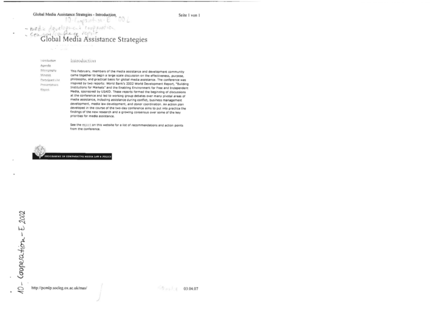 Global Media Assistance Strategies: The Role of Media in Economic and Democratic Development