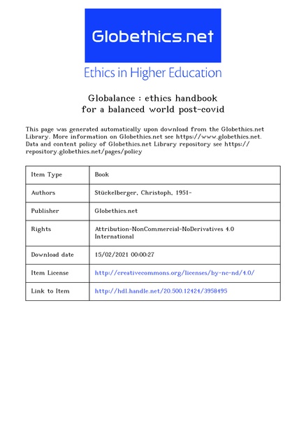 Globalance: Ethics Handbook for a Balanced World Post-Covid