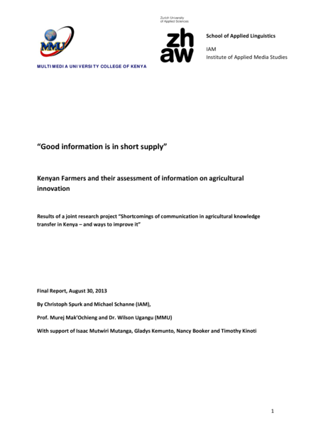 Zürich: Institute of Applied Media Studies (IAM) Zurich University of Applied Sciences (ZHAW); Multimedia University College of Kenya (MMU) (2013), 50 pp.