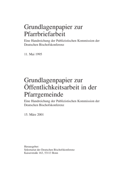 Grundlagenpapier zur Öffentlichkeitsarbeit in der Pfarrgemeinde: Eine Handreichung der Publizistischen Kommission der Deutschen Bischofskonferenz