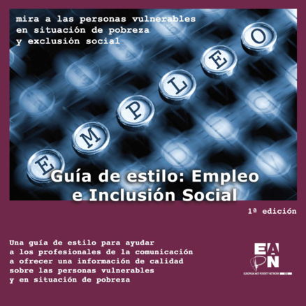 "Esta Guía de estilo para periodistas sobre empleo sigue la línea de los trabajos previos de EAPN España y EAPN Madrid de dotar a los periodistas de herramientas útiles para el desempeño de su labor profesional. A lo largo del presente texto se irán abordando diferentes conceptos como el de trabajo decente, salarios dignos o trabajadores pobres, entre otros. De igual manera se han querido explicar las cifras más relevantes en la medición del empleo, y hacerlas más accesibles a todos los profesionales." (Presentación)