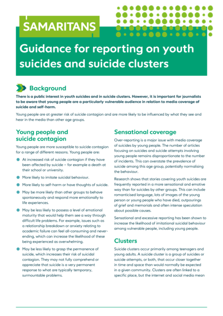 Guidance for Reporting on Youth Suicides and Suicide Clusters