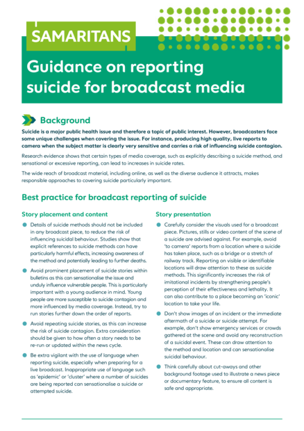 Guidance on Reporting Suicide for Broadcast Media