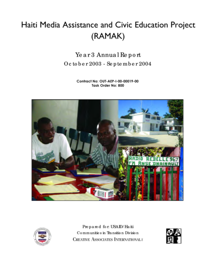 Haiti Media Assistance and Civic Education Project (RAMAK): Year 3 Annual Report October 2003 - September 2004