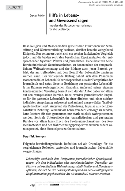 Communicatio Socialis, volume 43, issue 4 (2010), pp. 418-430