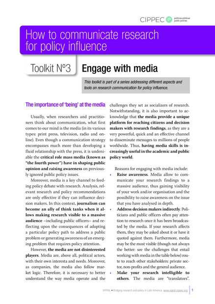 How to communicate research for policy influence. Toolkit No 3: Engage with media