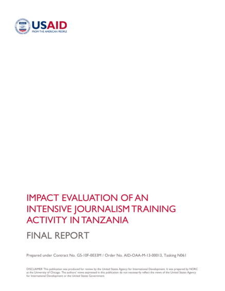 Impact Evaluation of an Intensive Journalism Training Activity in Tanzania: Final Report