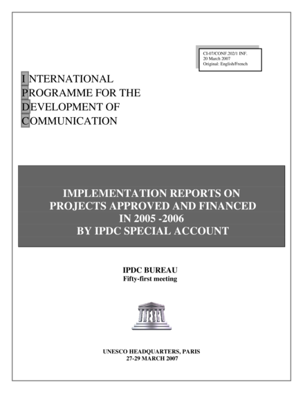 Implementation Reports on Projects Approved and Financed in 2005-2006 by IPDC Special Account