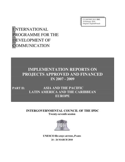 Implementation Reports on Projects Approved and Financed in 2007-2009. Part 2: Asia and the Pacific, Latin America and the Caribbean, Europe