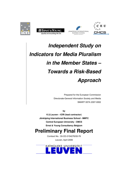 Independent Study on Indicators for Media Pluralism in the Member States: Towards a Risk-Based Approach
