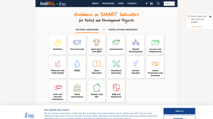"IndiKit was developed by the Czech organization People in Need (PIN). It aims to make monitoring and evaluation (M&E) of relief and development interventions easier and better - by helping humanitarian and development workers to use well-formulated project indicators and to correctly collect and analyse the data required for each indicator. IndiKit does not intend to cover an exhaustive list of indicators - its primary focus is on those indicators whose use requires more detailed guidance. PIN has done its best to ensure that this guidance is methodologically correct, useful, and concise. IndiKit's content is aligned with existing sector standards and was reviewed by M&E and technical specialists from non-government organizations, Global Clusters, UN agencies, and universities. However, keep in mind that the proposed guidance cannot be valid in all contexts – you always need to adapt it to the local realities." (About)