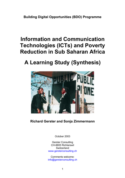 The Hague: International Institute for Communication and Development (IICD); Building Digital Opportunities (BDO) Programme (2003), iv, 99 pp.