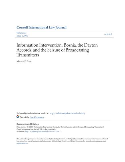 Information Intervention: Bosnia, the Dayton Accords, and the Seizure of Broadcasting Transmitters