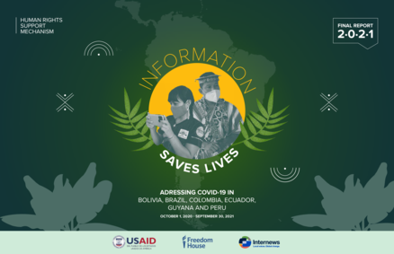 "Internews designed the HRSM Amazon project to provide adequate information about COVID to vulnerable communities. Each local partner maintained relationships with indigenous communities and remote sectors that received inadequate state health care, had high rates of mis/disinformation, and lacked information about the pandemic. Partners adapted project activities to these communities’ needs, providing information in their native languages and supporting community members to lead fact-based content production. For some communities, these trainings offered their first experiences ever in producing communications materials, and partners ensured indigenous values directly informed content creation with an intercultural approach. Internews observed the project’s direct and indirect positive impacts on shifting perspectives of indigenous organizations. For example, SERVINDI reported that when they first conducted their health diagnosis, indigenous communities rejected the vaccine; however, the Coordinator of Indigenous Organizations of the Amazon River Basin (COICA) requested more vaccination information in their native languages following the campaign’s implementation. Similarly, communication narratives that placed traditional and Western medicine in dialogue helped communities consider alternative strategies for coping with the pandemic. Throughout HRSM Amazon’s 12-month timeframe, the project consistently evolved to adapt initiatives to community needs. To reach last-mile communities in Colombia and Guyana, for instance, partners stored audio on flash drives to play repeatedly over loudspeakers where internet was not available. The pandemic not only heightened the visibility of digital connectivity challenges, but it particularly amplified the health realities of the most remote indigenous communities ignored by the State. According to local organizations, health problems extend far beyond just COVID infections. Indigenous communities face limited medical presence or no medical supplies on a regular basis; for example, the Araona Territory previously lacked a health center nearby, so the population had not received medical attention for 15 years. CEJIS adapted its project activities to go beyond preventing COVID-19 transmission in the Araona communities, providing radio listeners and national media across Bolivia with health information and updates on the Araona situation. As the project concluded, HRSM Amazon partners left indigenous communities equipped with their own communication initiatives, such as communicator networks and informational podcasts that community members are now continuing to lead independently, setting them up for greater long-term connectivity and information access. Not only will communities be able to more effectively share information among themselves moving forward, but this greater visibility will also help the State understand primary needs among indigenous communities, create culturally relevant health information campaigns, and act with increased respect for indigenous autonomy." (Executive summary)