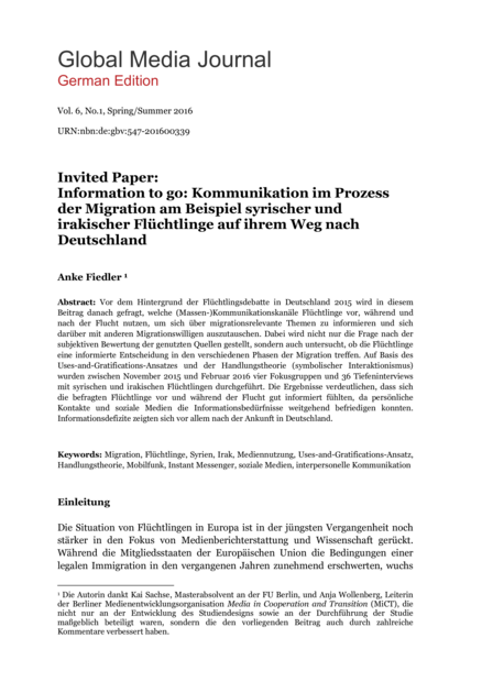 Global Media Journal - German Edition, volume 6, issue 1 (2016), 25 pp.