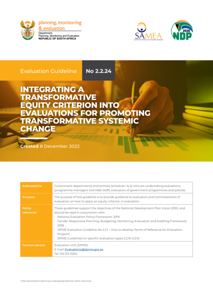Monitoring and Evaluation (DPME) Republic of South Africa Department of Planning; South African Monitoring and Evaluation Association (SAMEA) (2022), 39 pp.