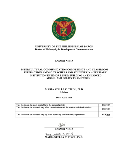 Los Baños: Doctoral Thesis University of the Philippines Los Baños (2024), xiii, 391 pp.
