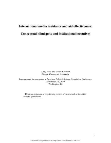 International Media Assistance and Aid Effectiveness: Conceptual Blindspots and Institutional Incentives