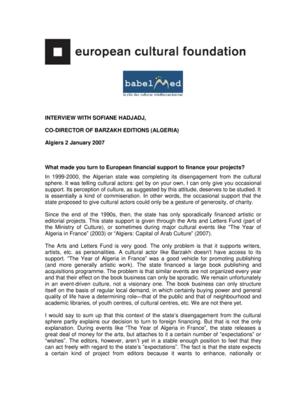 European Cultural Foundation; BabelMed (2007), 7 pp.