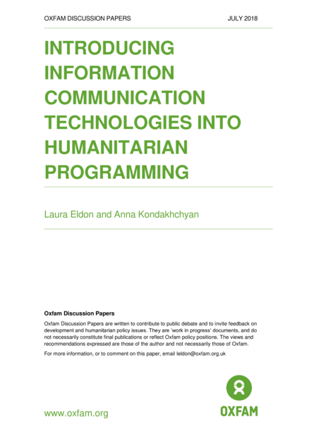 Introducing Information Communication Technologies Into Humanitarian Programming