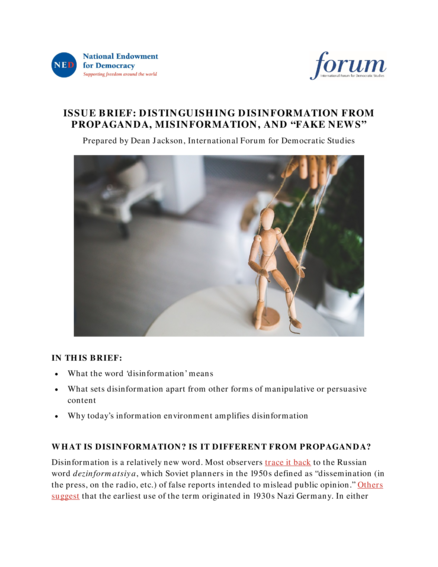 Issue Brief: Distinguishing Disinformation from Propaganda, Misinformation and 'Fake News'