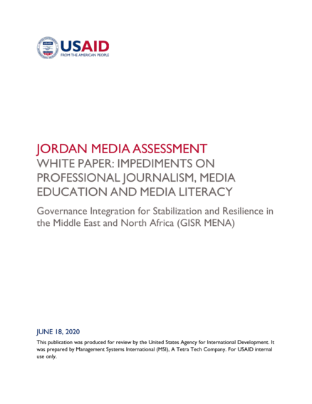 Jordan Media Assessment. White Paper: Impediments on Professional Journalism, Media Education and Media Literacy