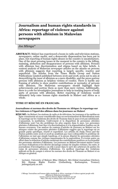 Journalism and Human Rights Standards in Africa: Reportage of Violence Against Persons with Albinism in Malawian Newspapers