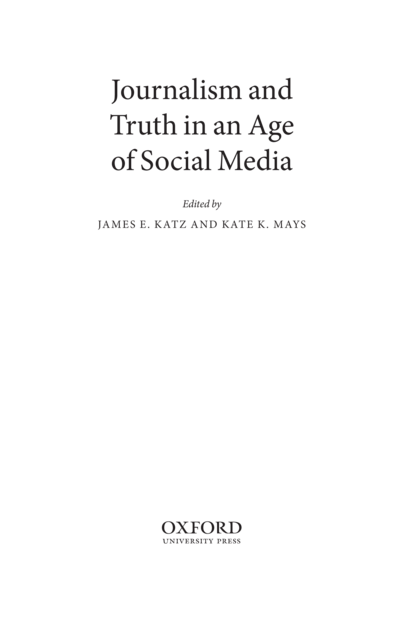 "This edited volume examines how the growth of social media and ancillary computer systems is affecting the relationship between journalism and the pursuit of truth. Experts explore how news is perceived and identified, presented to the public, and how the public responds to news. They consider social media’s effect on the craft of journalism as well as the growing role of algorithms, big data, and automatic content production regimes. The volume’s aim is to confront these issues in a way that will be of enduring relevance; the discussions about contemporary journalism inform current students and help scholars in the future. Chapters reflect on questions such as what is different and what remains the same in journalism’s pursuit of truth now that social media has become such a prominent force in news gathering, dissemination, and reinterpretation? How has reader participation and responses changed? What are the implications for journalistic information gathering and truth claims? What is different now about the social roles of journalists and media institutions? How does interaction between journalists and social media affect democratic practices? The chapters offer a mix of empirical and critical work that reflects on journalism’s past, present, and future roles in our lives and in society." (Publisher description)