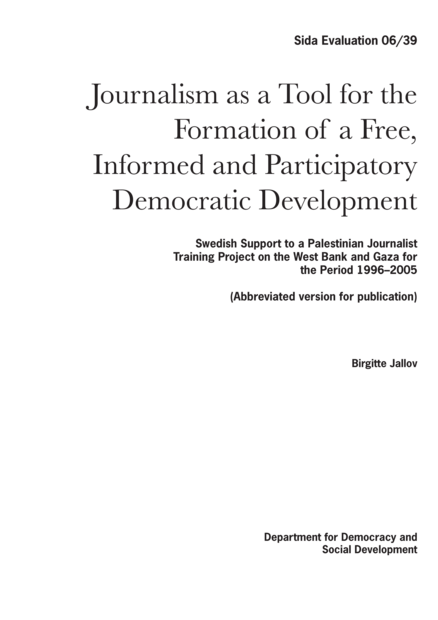 Journalism as a Tool for the Formation of a Free, Informed and Participatory Democratic Development: Swedish Support to a Palestinian Journalist Training Project on the West Bank and Gaza for the Period 1996-2005