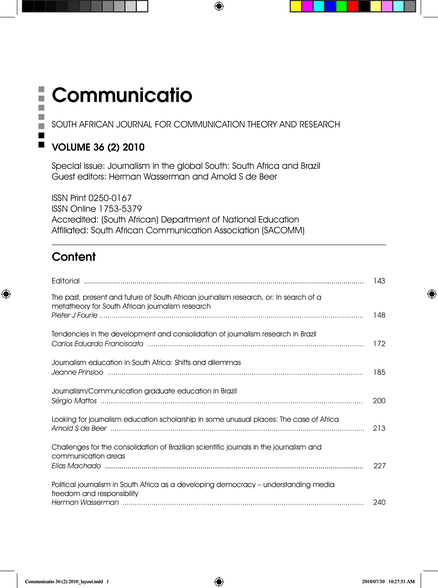Communicatio: South African Journal for Communication Theory and Research, volume 36, issue 2 (2010), pp. 143-287