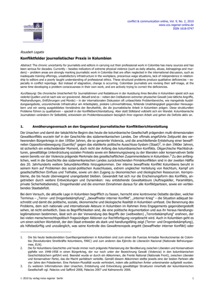 "The chronic uncertainty for journalists and editors in carrying out their professional work in Colombia has many sources and has been serious for decades. Currently – besides indicators of extreme physical violence (such as daily attacks, abuse, kidnappings and murders) – problem areas are strongly marking journalistic work in Colombia that are often neglected in the international discussion, such as inadequate training offerings, unsatisfactory infrastructure in the workplace, precarious wage situations, lack of independence in relationship to editors and a poorly taught understanding of professional ethics. These structural problems produce qualitative deficiencies – especially in conflict reportage. But instead of stagnation, change is occurring. Colombian journalists are revising their self-image, at the same time developing a problem consciousness in their own work, and are actively trying to correct the deficiencies." (Abstract)
