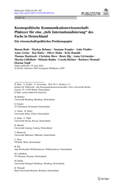 Kosmopolitische Kommunikationswissenschaft: Plädoyer für eine „tiefe Internationalisierung“ des Fachs in Deutschland. Ein wissenschaftspolitisches Positionspapier