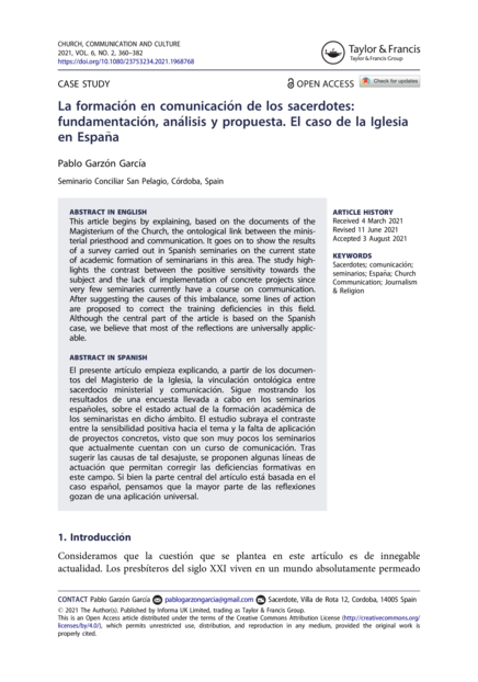 Church, Communication and Culture, volume 6, issue 2 (2021), pp. 360-382