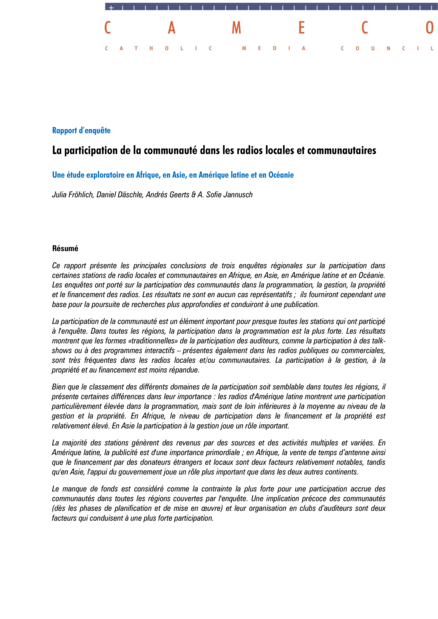 La participation de la communauté dans les radios locales et communautaires: Une étude exploratoire en Afrique, en Asie, en Amérique latine et en Océanie